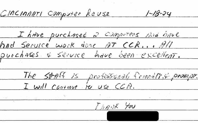 Have you received a computer from Cincinnati Computer Reuse? We'd love to hear how it has made a difference in your life.